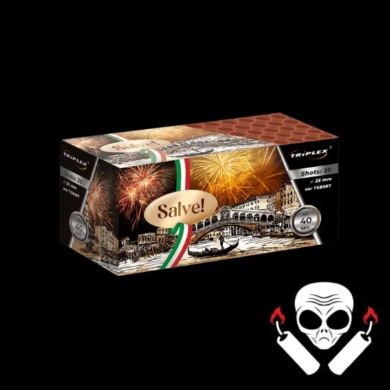 Zachwyć publiczność efektownym pokazem z wyrzutnią Salve! TXB587 od renomowanej marki Triplex. Ta średniej wielkości bateria łączy klasyczne pionowe wystrzały z dynamicznymi efektami kątowymi, tworząc niezapomniane widowisko na każdą okazję